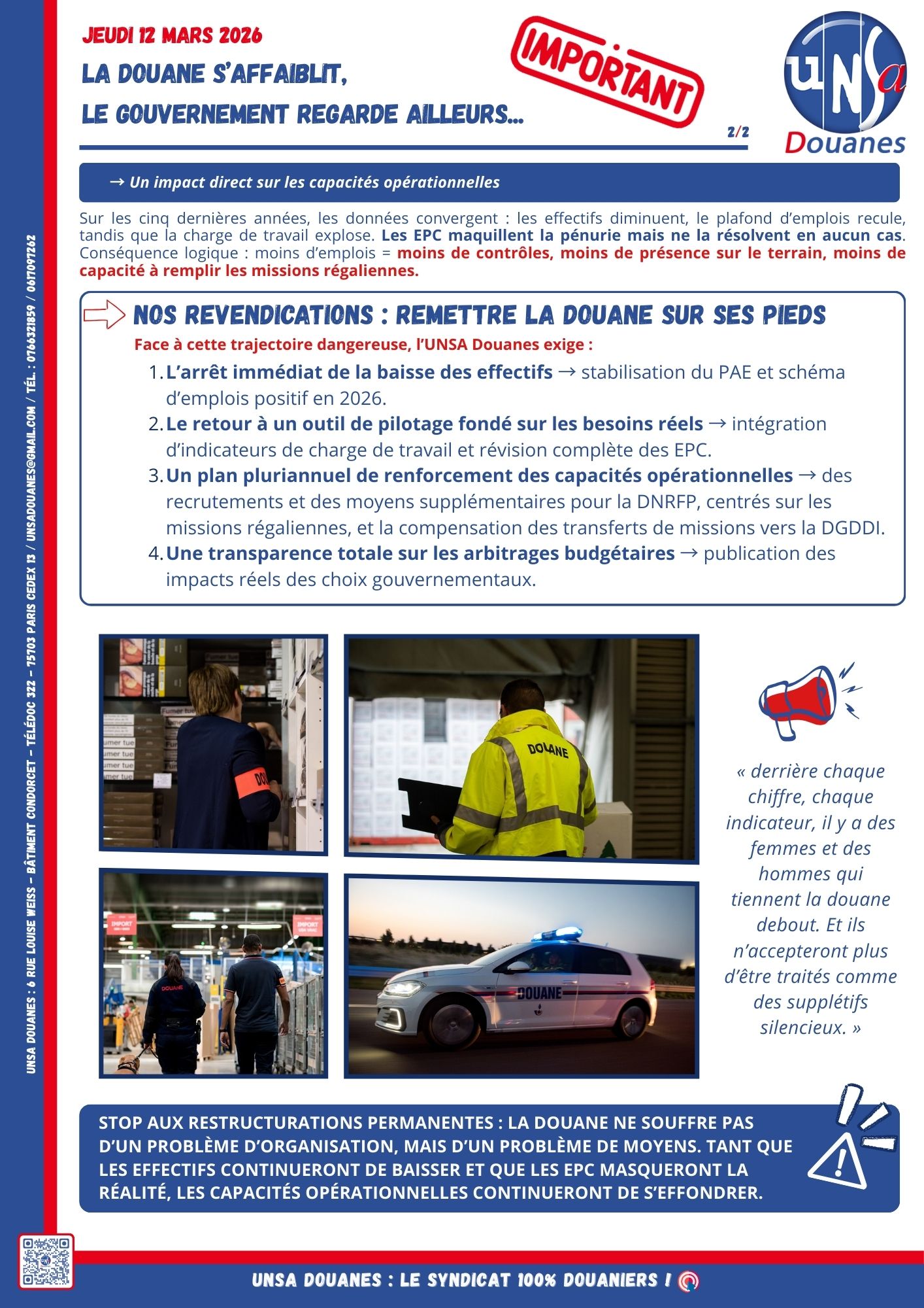 LES AGENTS constituent LE SYNDICAT, qui organise LE CONTRE-POUVOIR : rejoignez l'UNSA Douanes !